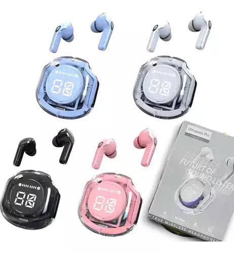 The Ultrapods Pro are high-style, True Wireless Stereo (TWS) earbuds that stand out due to their unique transparent “crystal” design. These earbuds are designed for users who want a combination of futuristic aesthetics and reliable performance for music and hands-free calls. The case is made from a clear material that reveals the internal circuitry and the earbuds inside, giving it a modern, “techy” look.